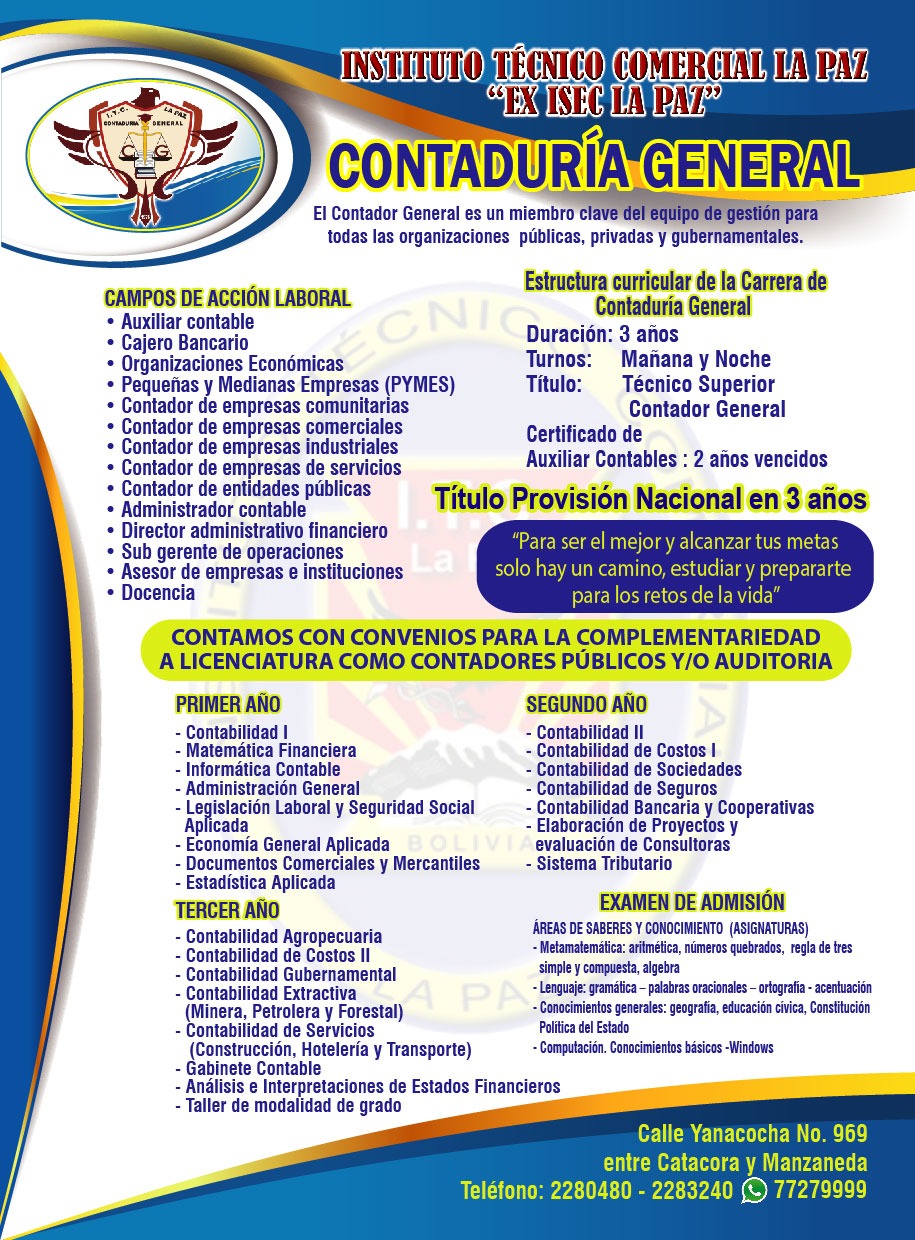 A iniciativa del entonces Rector del I.S.E.C. La Paz Sr. Rolando Narváez y el Director académico Lic. José Gumiel Gutiérrez se amplió la oferta a otras carreras como las de Turismo y hotelería, Analista de sistemas, Gastronomía, Guía de Turismo. La carrera de turismo y Hotelería cuenta con los siguientes docentes: Archondo Vidaurre Roberto, Arias Pérez Dórys, Castro Huanca Consuelo, Amusquivar Fernández Luis, Choque Nicolás Agapito, Cuéllar Zapata Edgar, Gutiérrez Farfán Edgar, López Fernández José Luis, Luna Siñani Renato, Pérez Rivera Henry, Sejas Bacarreza Nydia Soraya, Vásquez Torrico Víctor y Villegas Vargas Grace. Resolución Ministerial Nº 444/06 Las conclusiones del Informe Técnico de 27 de septiembre de 2006 VES/DSFT/Nº653/06 para la acreditación profesional al Director General de Formación Técnica señala: el Proyecto Educativo cumple con los requisitos establecidos en la normativa vigente, por tanto la solicitud efectuada por el Lic. José Gumiel Rector del ISEC - La Paz, en sentido de renovar y ampliar la oferta Curricular, es considerada procedente. Las nuevas carreras a ser impartidas por la Institución son: Turismo y Hotelería, Idiomas y Analista de Sistemas a nivel Técnico Superior; Gastronomía y Guía Turístico a Nivel Técnico Medio. El Ministro de Educación y Culturas en uso de las atribuciones conferidas por Ley Resuelve: Artículo 1. (AUTORIZACIÓN LA RENOVACIÓN Y AMPLIACIÓN DE OFERTA CURRICULAR).- Autorizar la renovación y la ampliación de la oferta curricular del Instituto Superior de Educación Comercial La Paz (I.S.E.C. La Paz) en el Departamento de La Paz, con las Carreras: Nivel Técnico Superior: Turismo y Hotelería, Idiomas, Analista de Sistemas. Nivel Técnico Medio: Gastronomía y Guía Turístico. Firman: Dr. Eloy Toledo Yana, Director General de Asuntos Jurídicos Ministerio de Educación y Culturas, Lic. Benecio Quispe Gutierrez